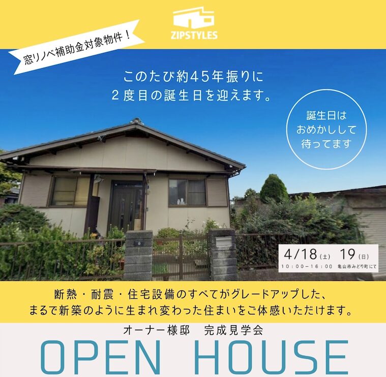 開催中【4月18日(土) / 19日(日) 開催】「2度目の誕生日」リノベーションモデルハウス完成見学会 in 亀山市みどり町
